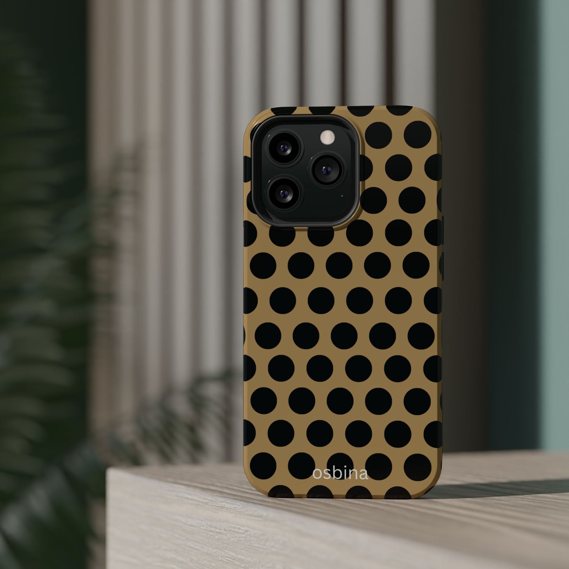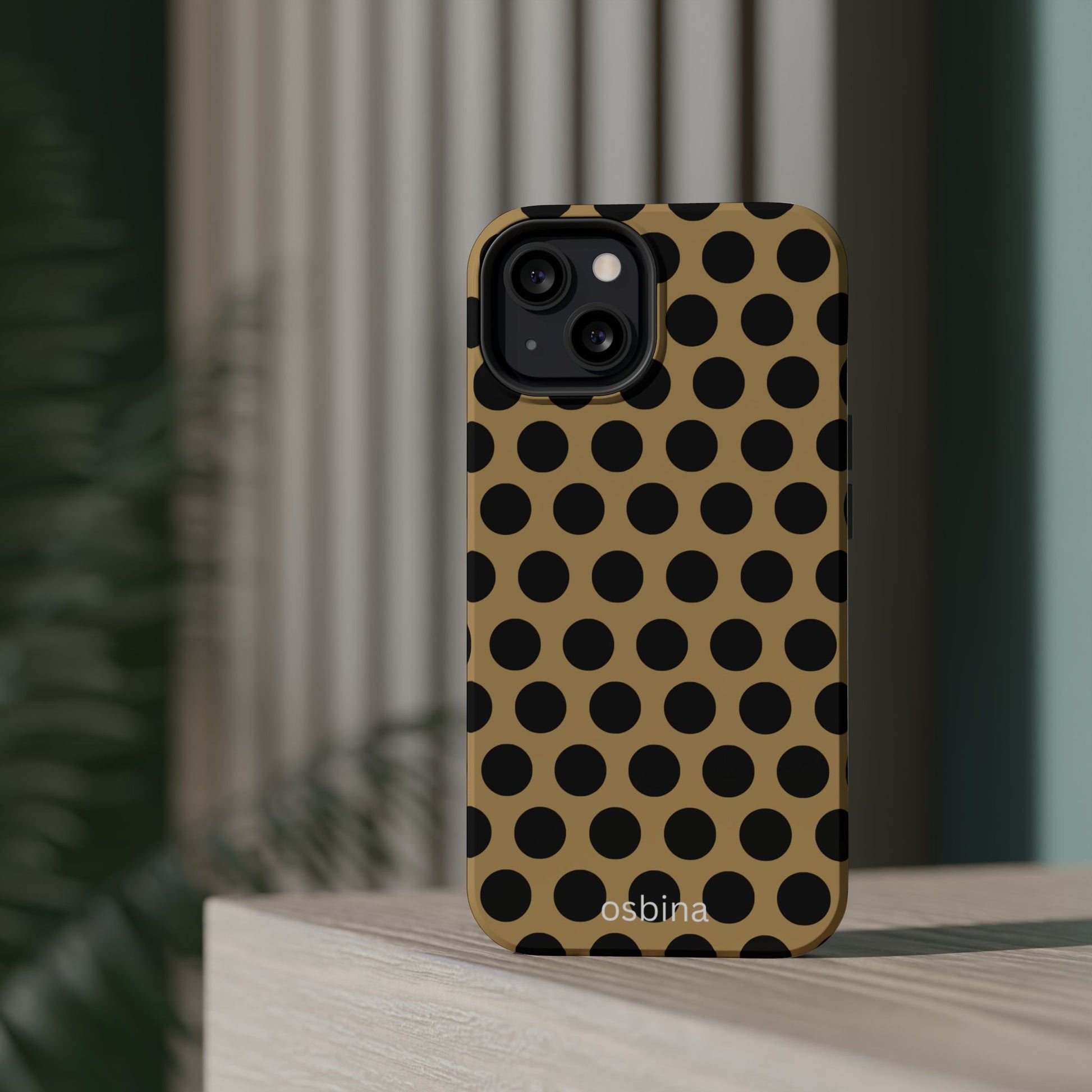osbina | MagSafe compatible for iPhone | Camel Noir Dots Phone Case | Modern Muse Collection