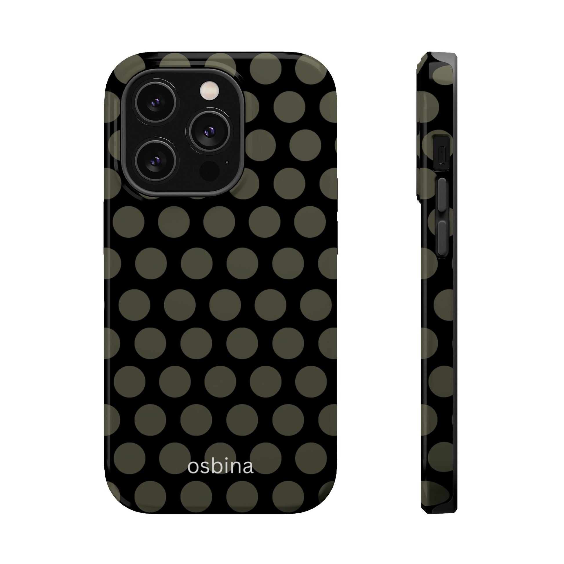 Not just a case — an accessory. The osbina Onyx Chic phone case is where classic elegance meets bold sophistication. Part of the Modern Muse Collection, this design features a sleek black background with subtle gray polka dots, creating a chic, contemporary pattern that elevates any outfit. Perfect for gifting or self-indulging, this case blends durability, fashion, and purpose in one. Elevate your everyday style with this refined phone case — because your tech deserves as much personality as you do. ✨