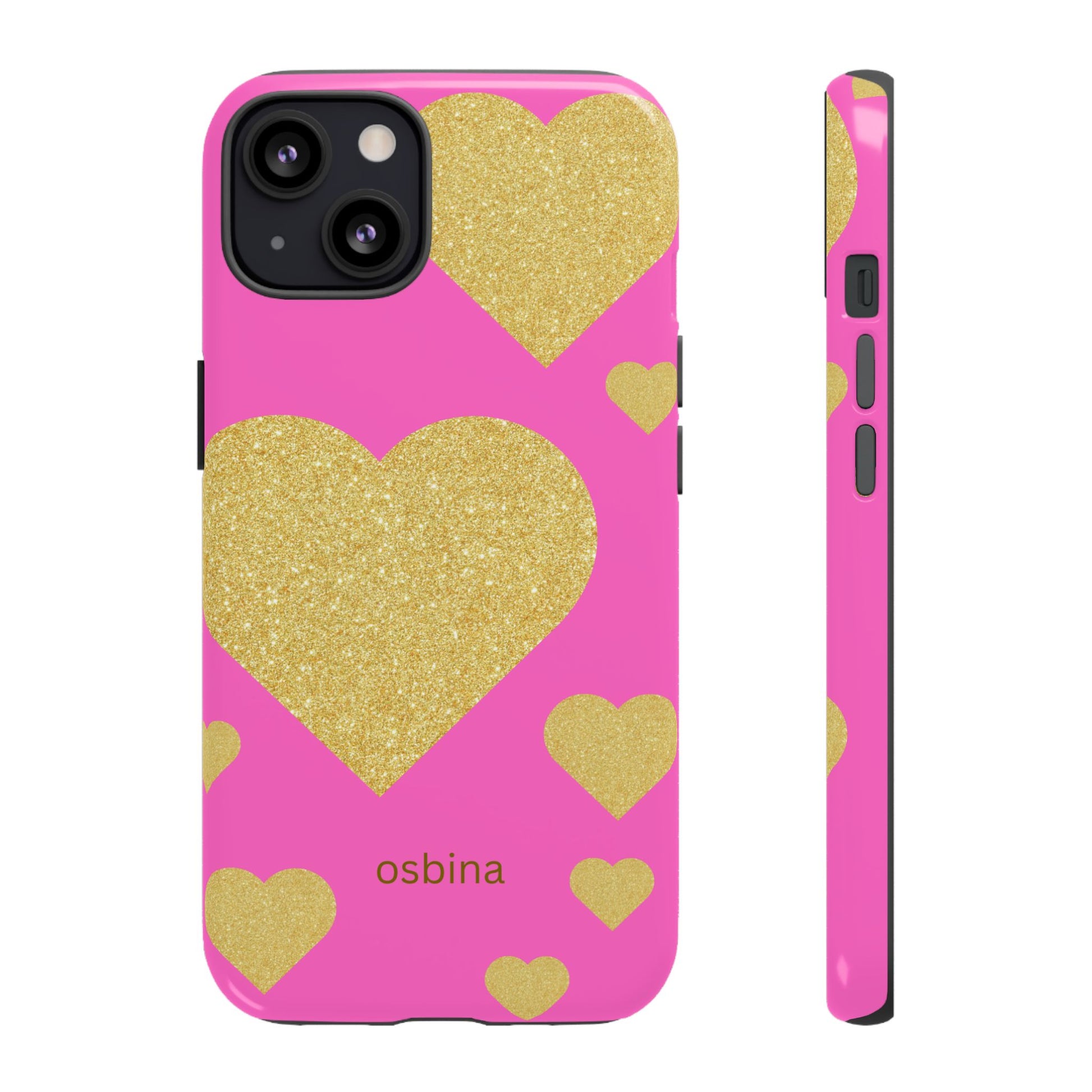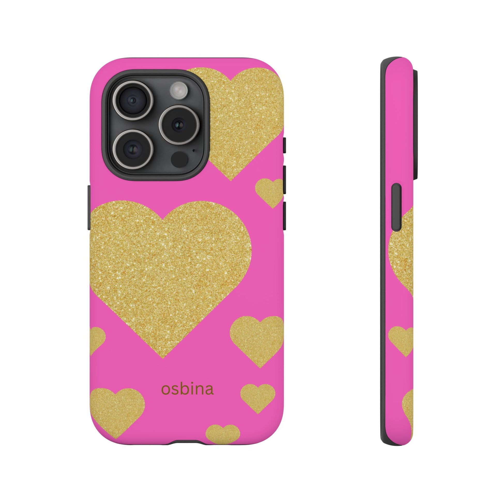 Not just a case — an accessory. The osbina Amoura phone case is where sweet charm meets radiant sophistication. Designed for the modern muse who embraces love, style, and confidence, this case transforms your phone into a chic accessory that supports a cause. The playful pink backdrop adorned with shimmering gold hearts creates a statement piece full of warmth and personality, perfect for pairing with any look. Ideal for gifting or treating yourself, this chic case blends durability, fashion, and purpose in one.