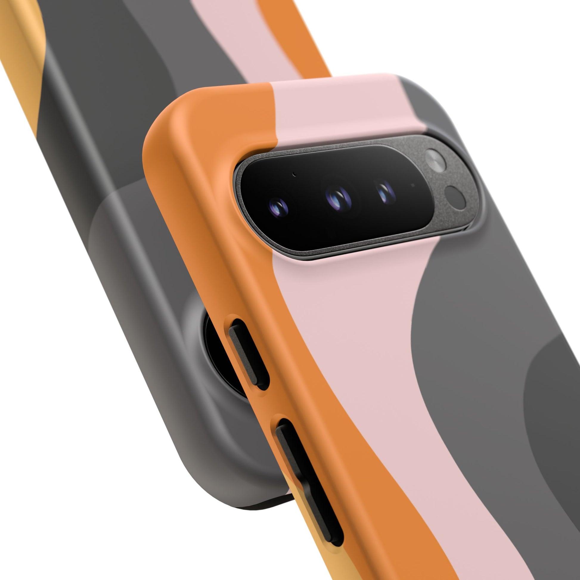 The Retro Swirl Case in Pumpkin Pink + Dark Gray + Burnt Yellow | The Season Collective